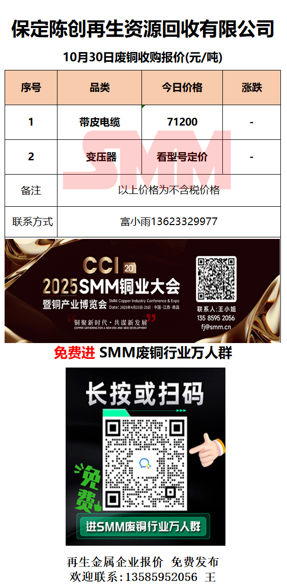 10月30日保定陈创 废铜采购报价