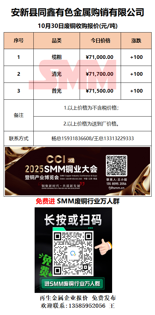 10月30日安新同鑫 废铜采购报价