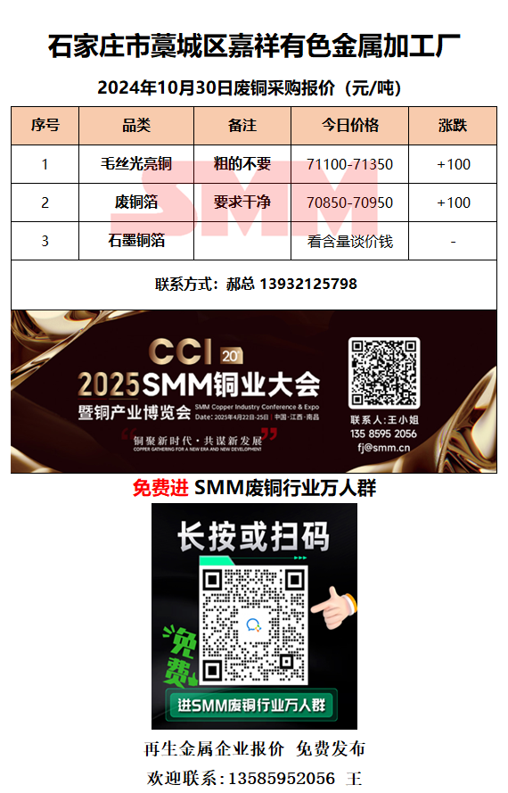 今日嘉祥有色金属 废铜采购报价已更新,有货的朋友欢迎联系我们!