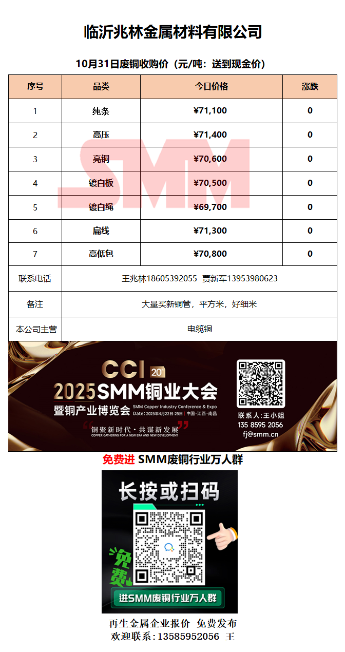 今日临沂兆林金属 废铜采购报价已更新,有货的朋友欢迎联系我们!