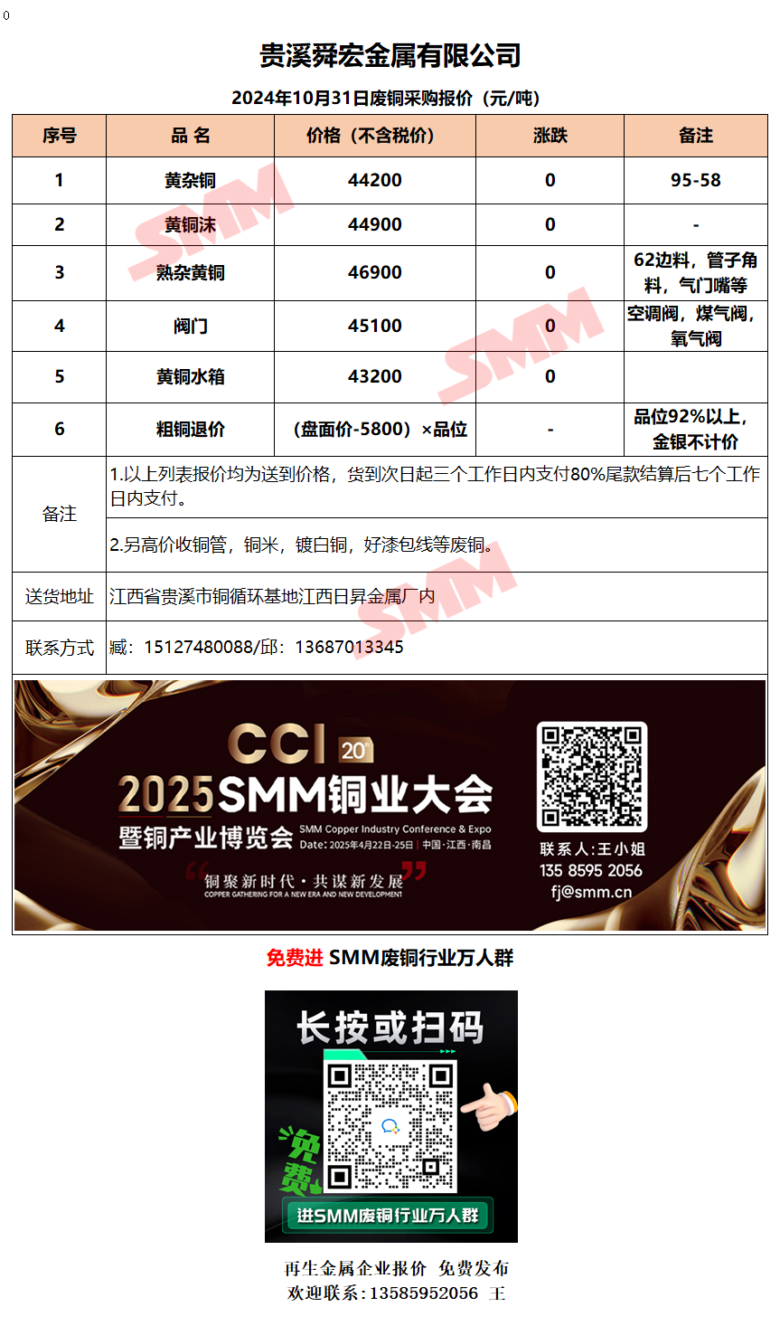 今日贵溪舜宏 废铜采购报价已更新,有货的朋友欢迎联系我们!