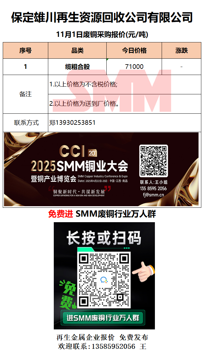 11月1日保定雄川 废铜采购报价