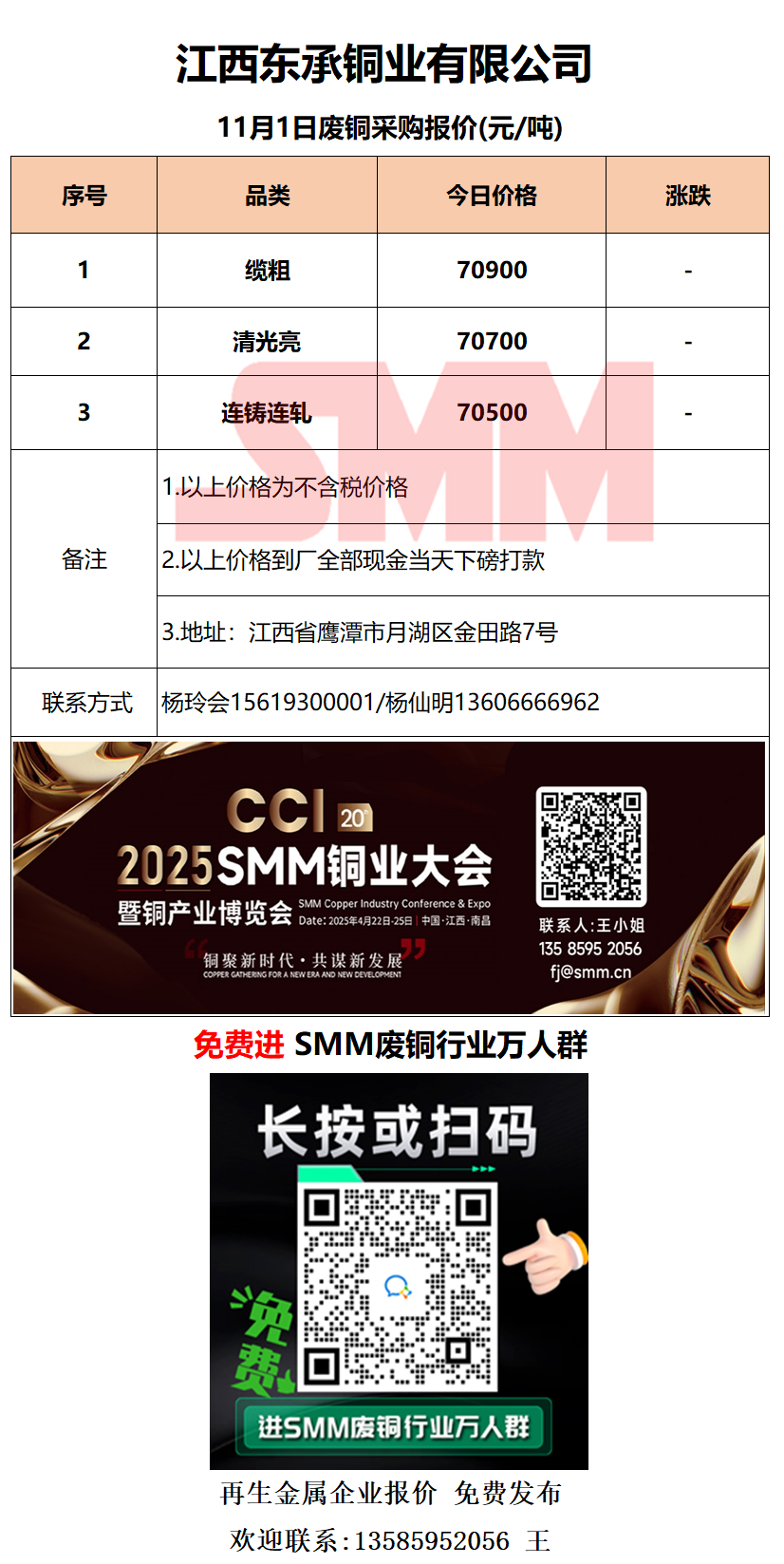 今日江西东承 废铜采购报价已更新,有货的朋友欢迎联系我们!