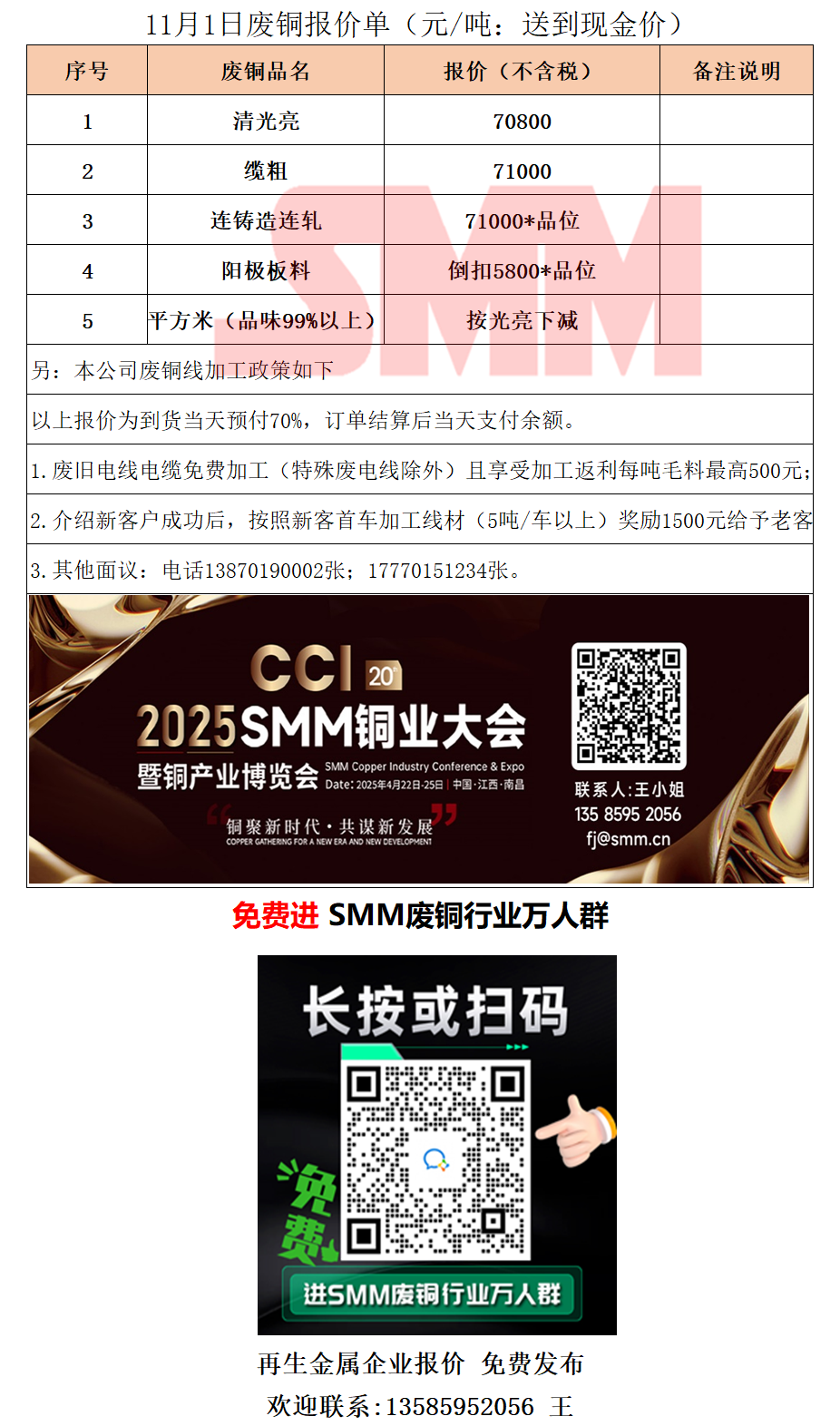 11月1日江西铜鑫红 废铜采购报价