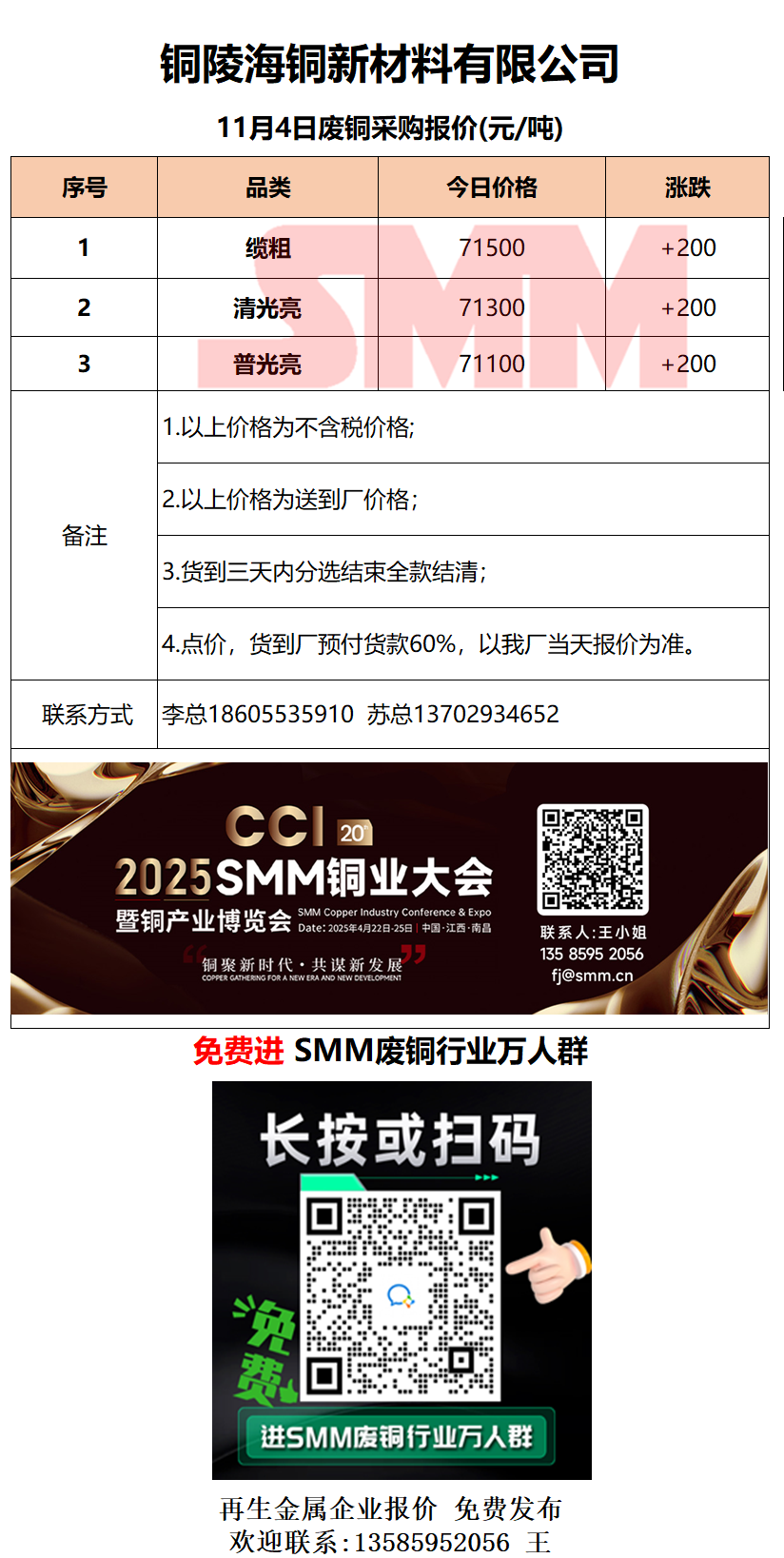 11月4日铜陵海铜 废铜采购报价