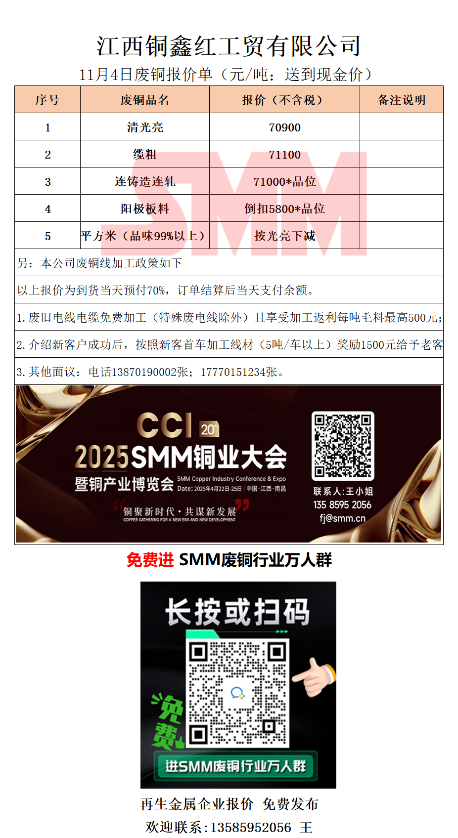 11月4日江西铜鑫红 废铜采购报价