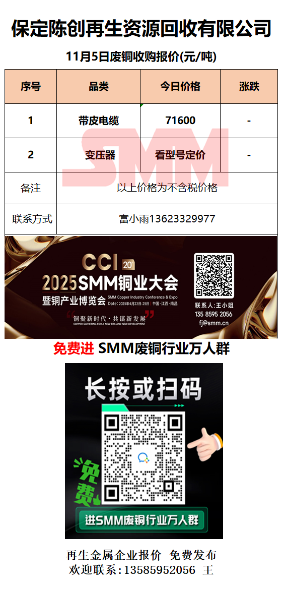 11月5日保定陈创 废铜采购报价