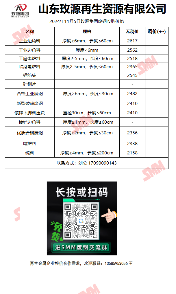 11月5日山东玫源再生 废钢收购报价