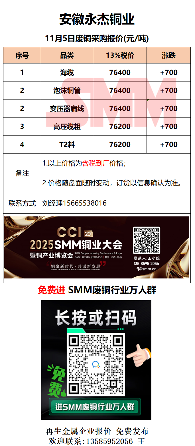 11月5日安徽永杰 废铜采购报价