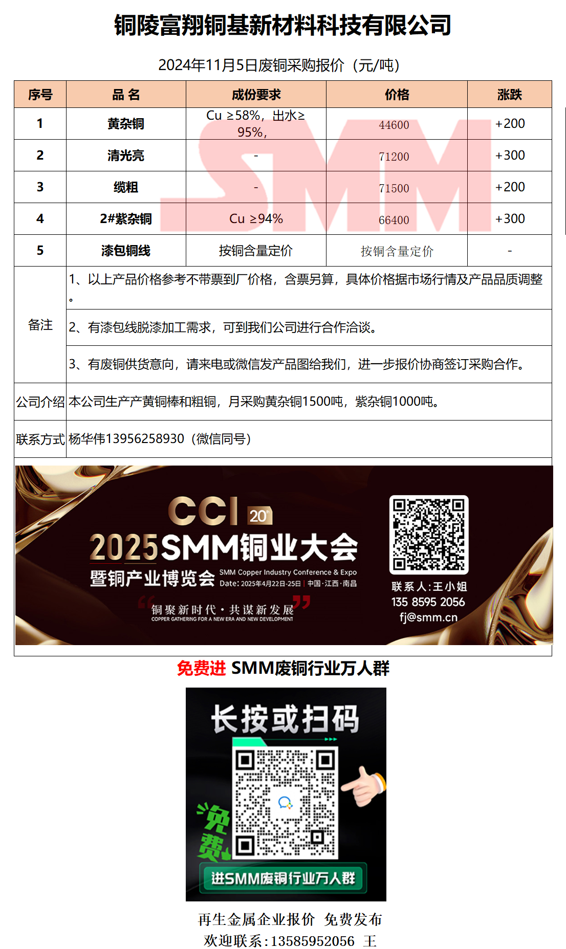 11月5日铜陵富翔 废铜采购报价