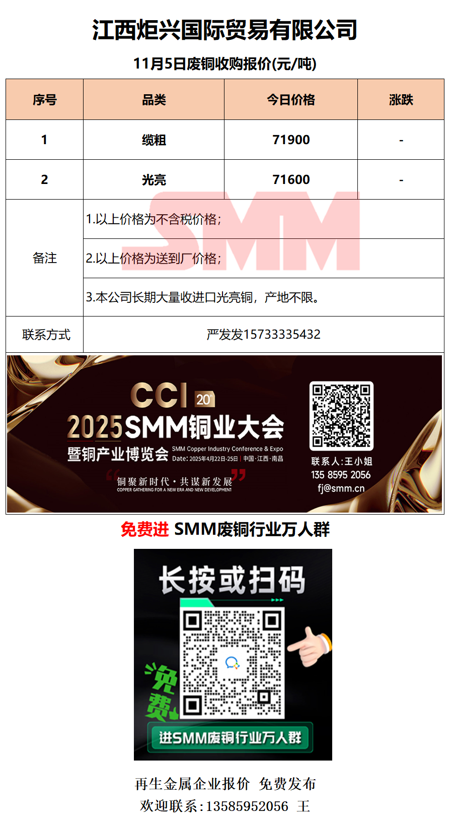 11月5日江西炬兴 废铜采购报价