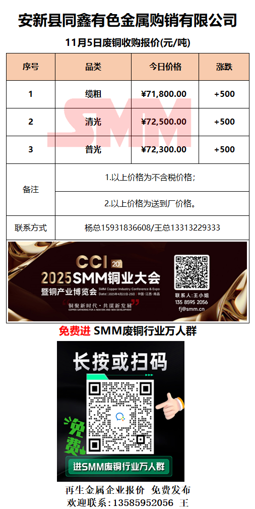11月5日安新同鑫 废铜采购报价