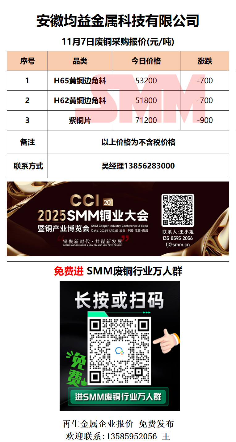 今日安徽均益 废铜采购报价已更新,有货的朋友欢迎联系我们!