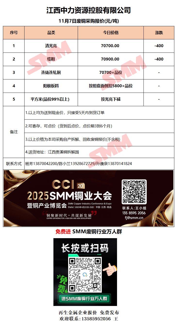 今日江西中力 废铜采购报价已更新,有货的朋友欢迎联系我们!