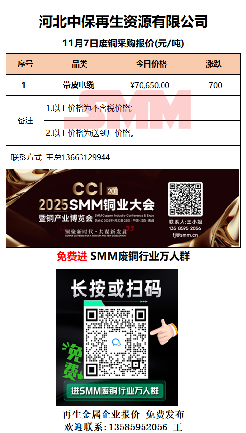 11月7日河北中保 废铜采购报价