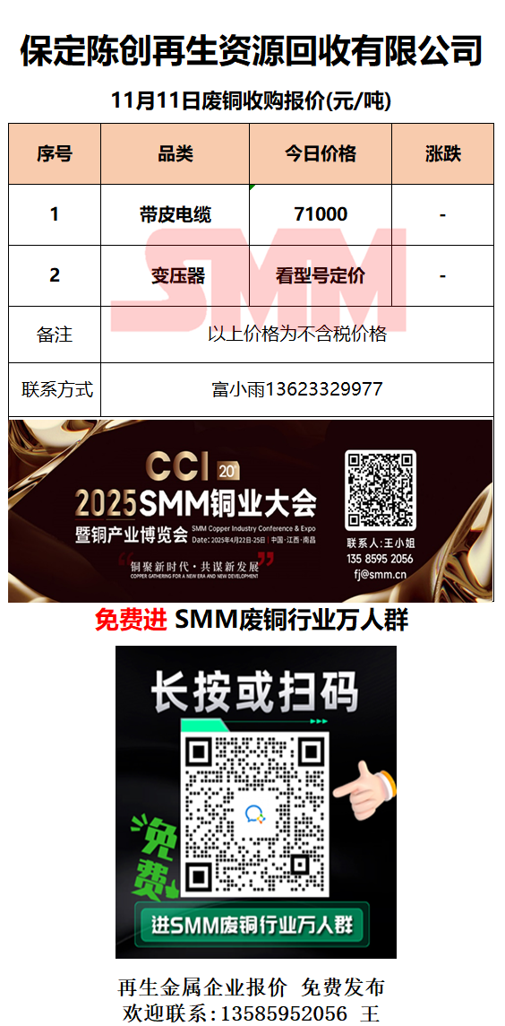 11月11日保定陈创 废铜采购报价