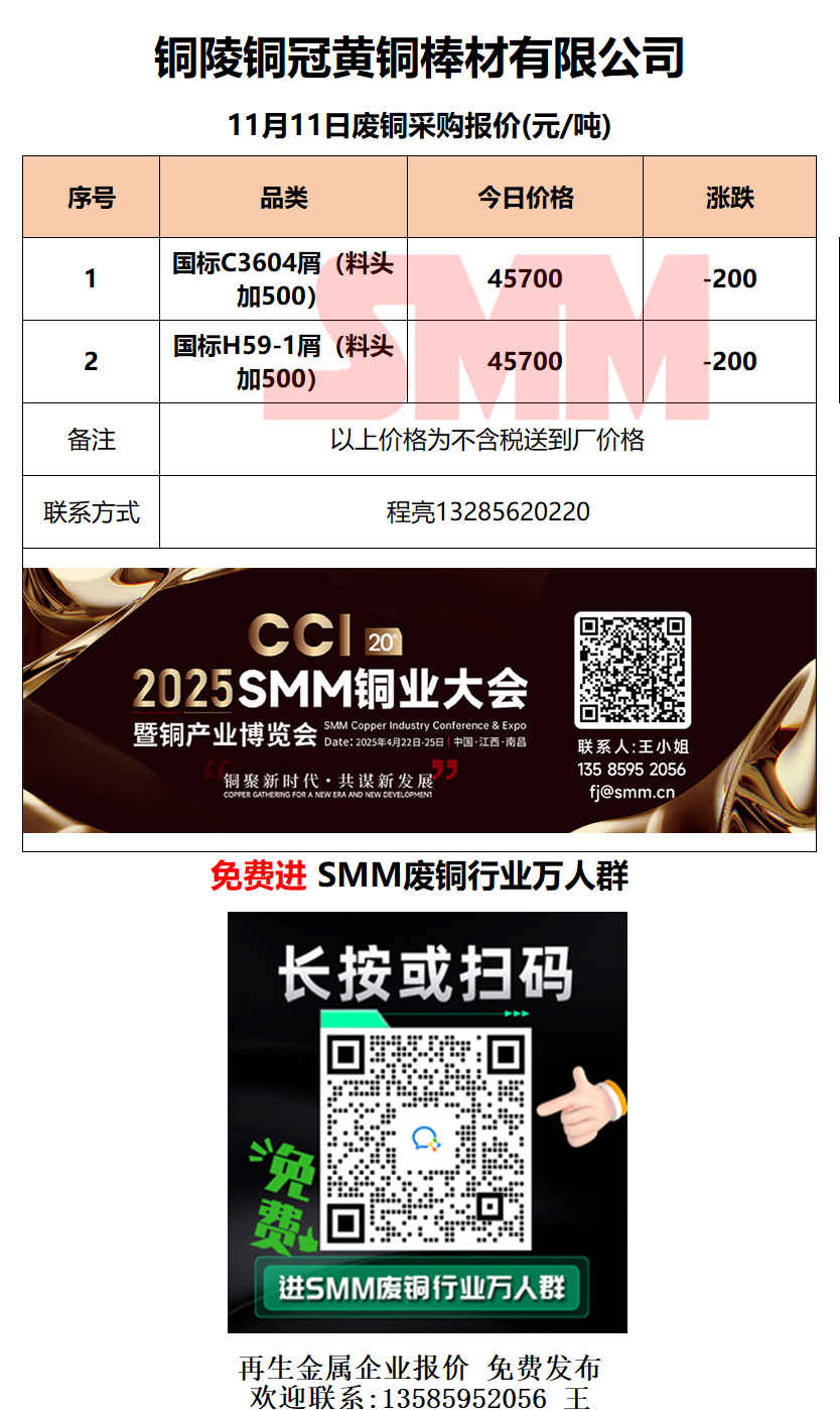 今日铜陵铜冠 废铜采购报价已更新,有货的朋友欢迎联系我们!