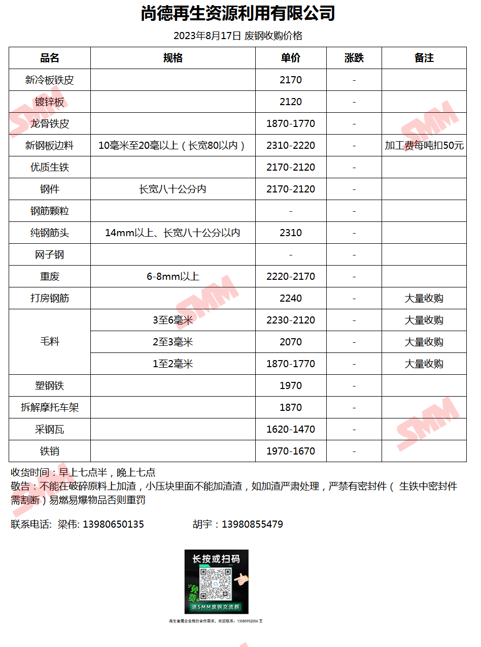 今日尚德再生资源 废钢收购报价已更新,有货的朋友欢迎联系我们!