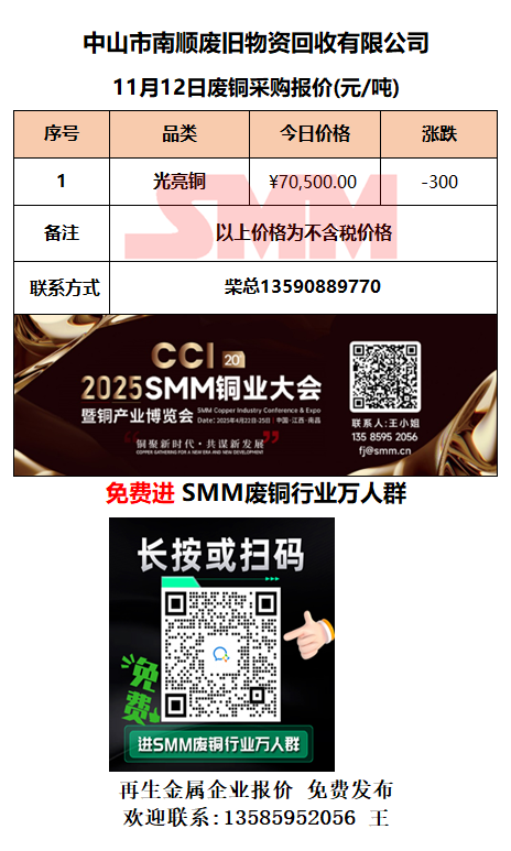 今日中山南顺 废铜采购报价已更新,有货的朋友欢迎联系我们!
