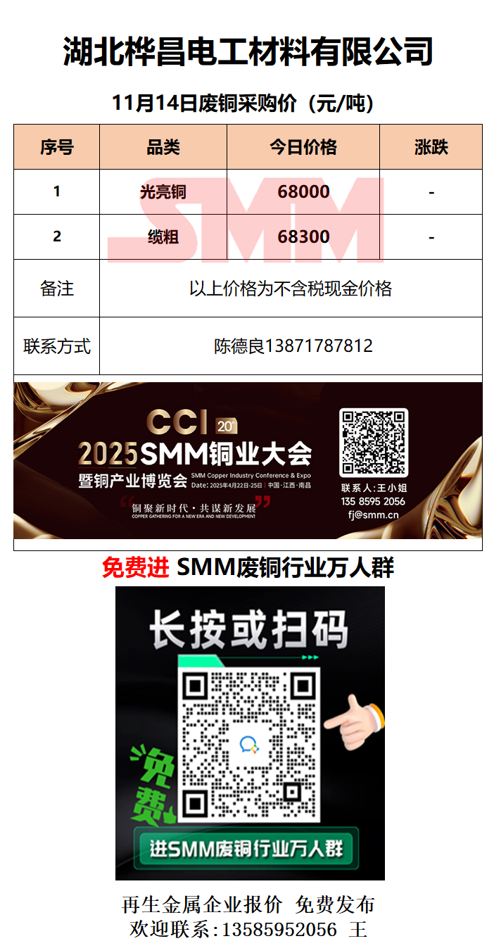 今日湖北桦昌 废铜采购报价已更新,有货的朋友欢迎联系我们!