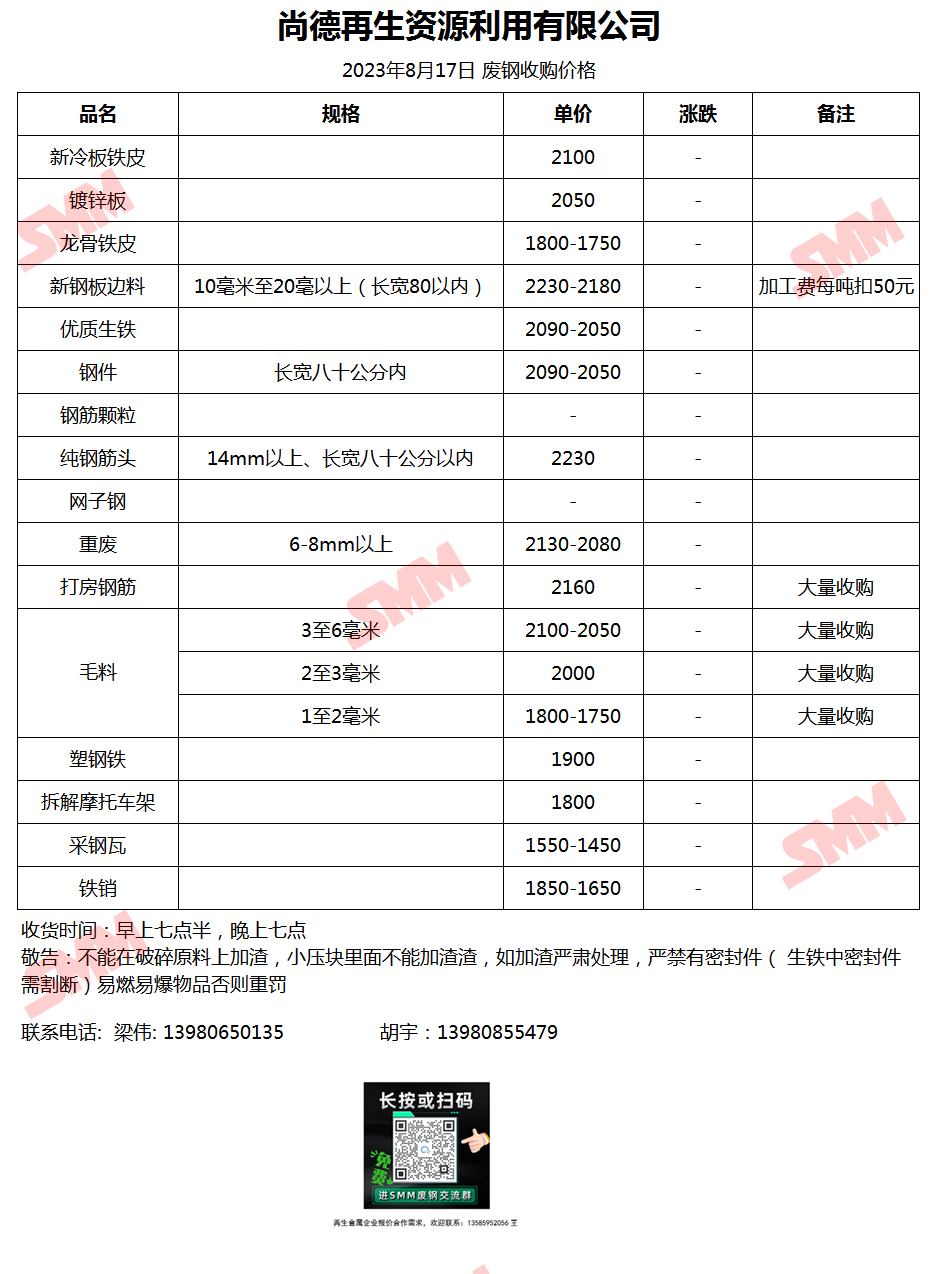 今日尚德再生资源 废钢收购报价已更新,有货的朋友欢迎联系我们!