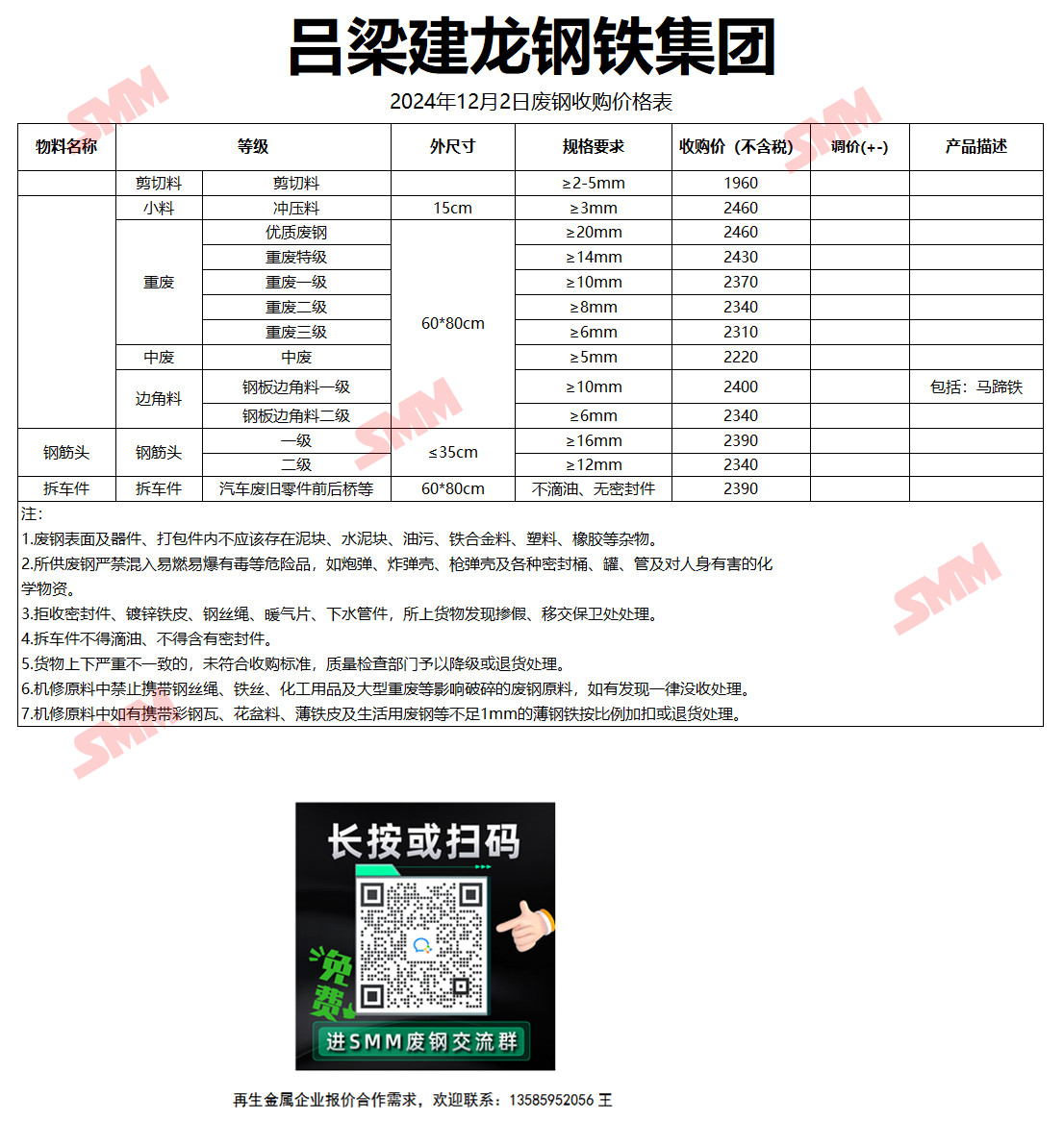 今日吕梁建龙钢铁 废钢收购报价已更新,有货的朋友欢迎联系我们!