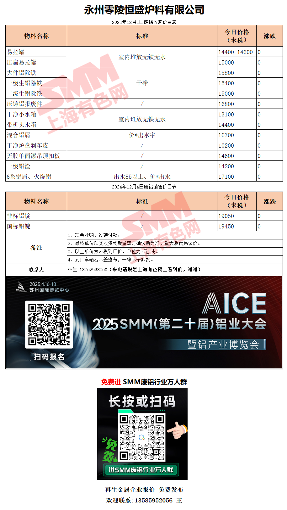 12月4日湖南恒盛 废铝采购报价