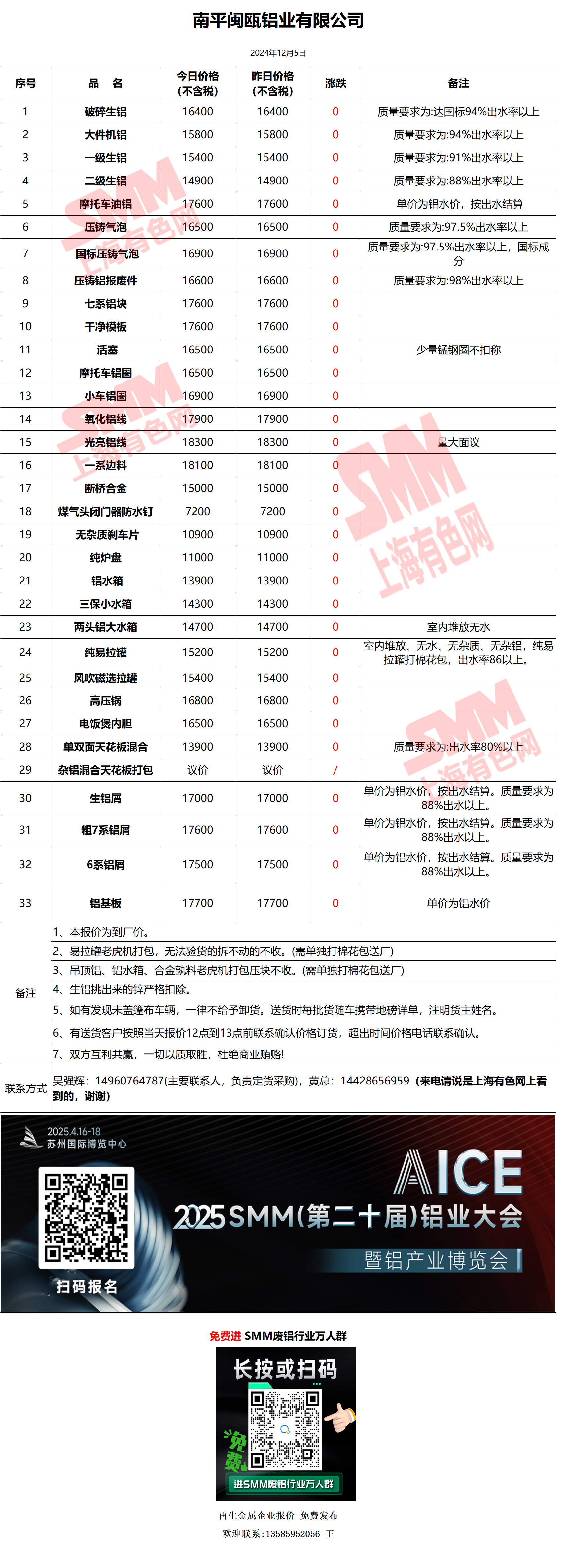 今日南平闽瓯 废铝采购报价已更新,有货的朋友欢迎联系我们!