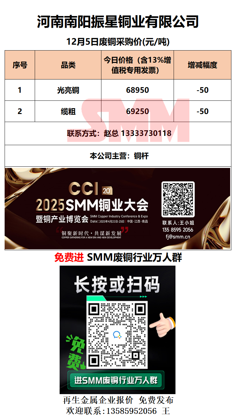今日南阳振星 废铜采购报价已更新,有货的朋友欢迎联系我们!