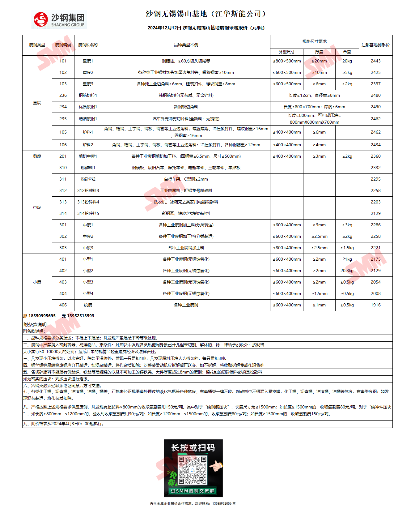今日沙钢锡山基地 废钢采购报价已更新,有货的朋友欢迎联系我们!
