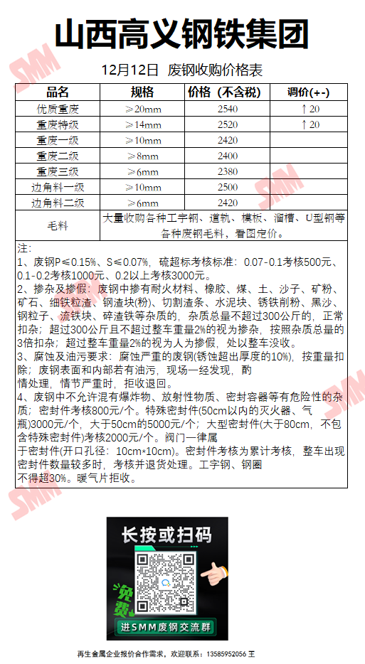 今日14时23分山西高义 废钢收购报价已更新,有货的朋友欢迎联系我们!