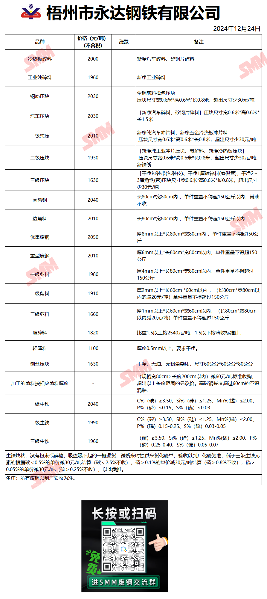 12月24日梧州永达钢铁 废钢收购报价