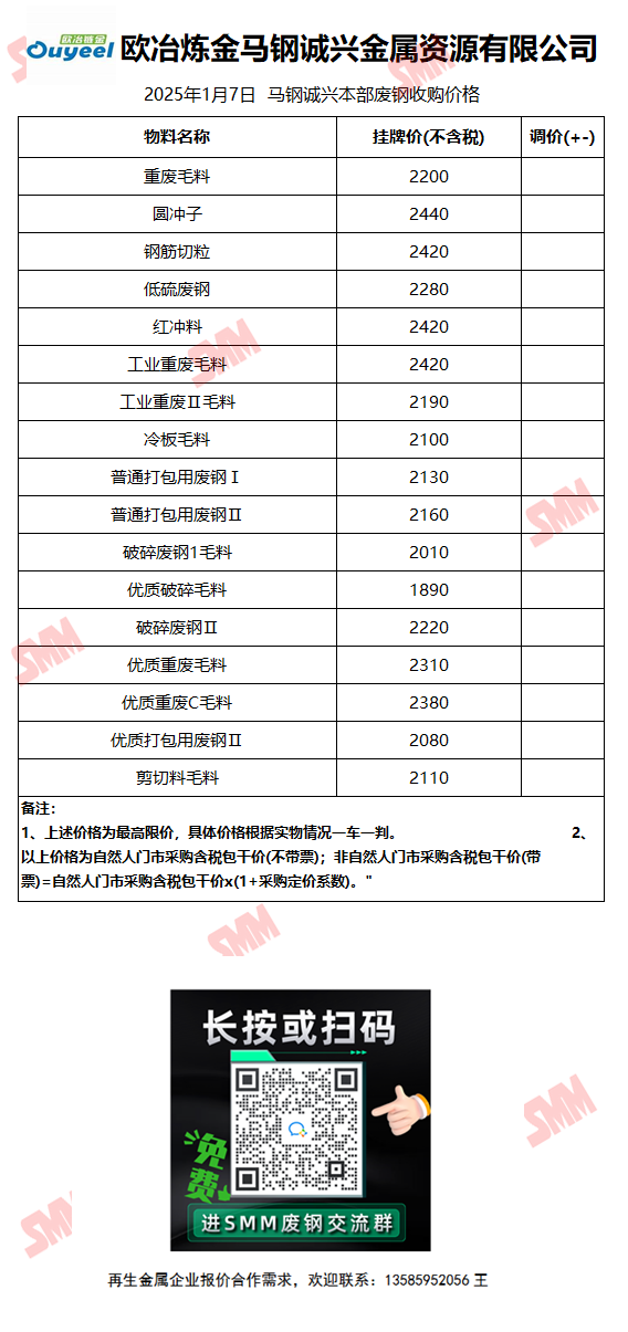今日马钢诚兴 废钢收购报价已更新,有货的朋友欢迎联系我们!