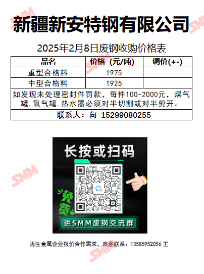2月8日新安特钢 废钢收购报价