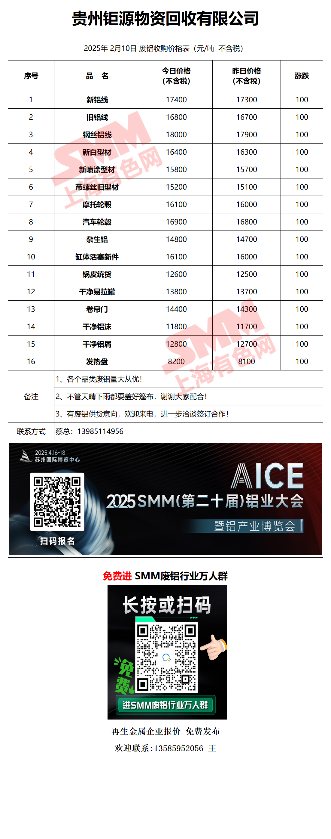今日贵州钜源 废铝采购报价已更新,有货的朋友欢迎联系我们!
