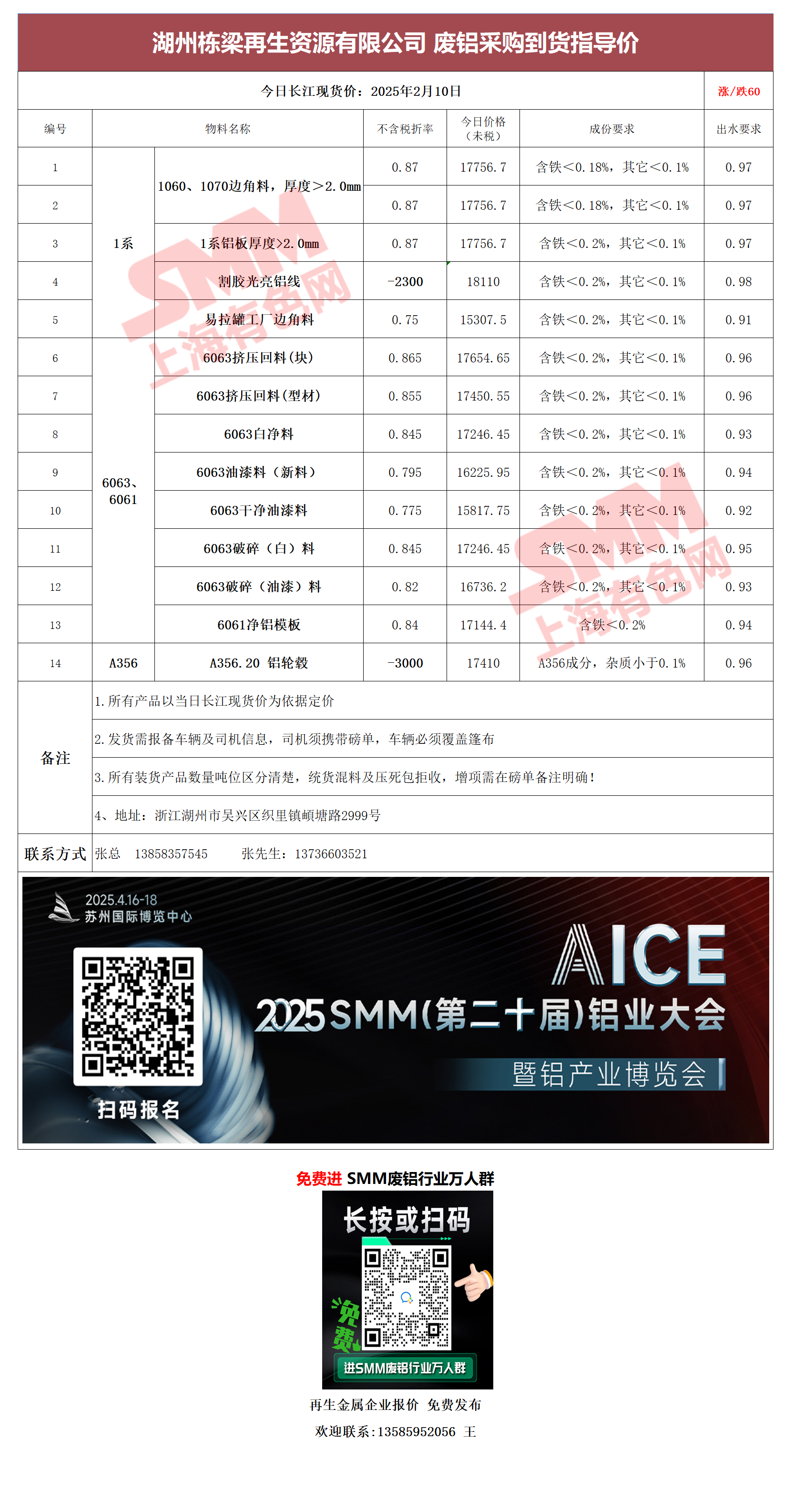 2月10日湖州栋梁再生 废铝采购报价