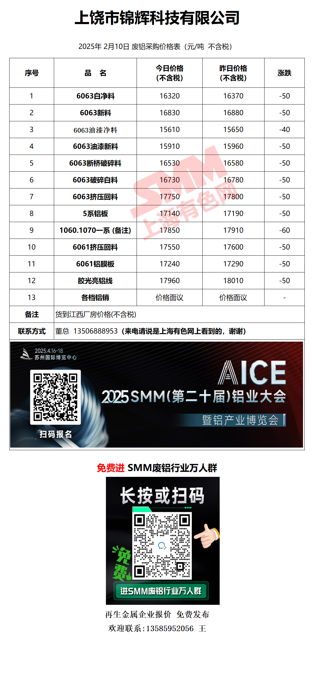 今日上饶锦辉 废铝采购报价已更新,有货的朋友欢迎联系我们!