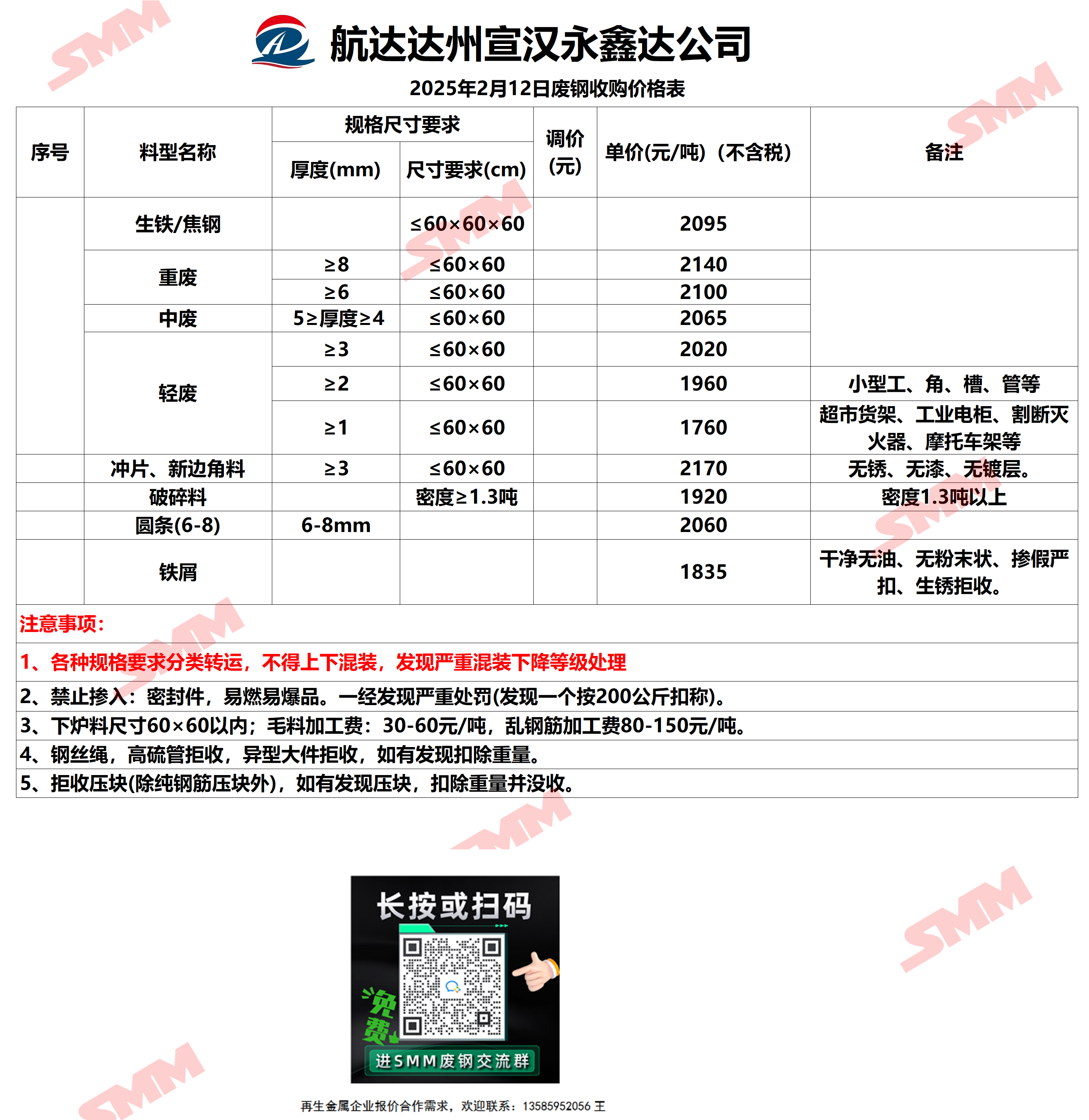 今日达州宣汉永鑫达 废钢收购报价已更新,有货的朋友欢迎联系我们!