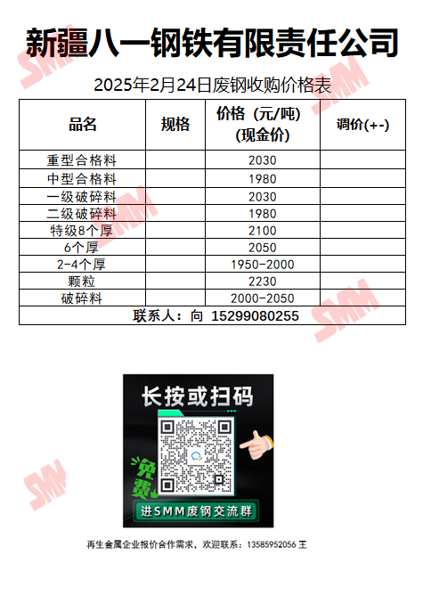 今日新疆八一钢铁 废钢收购报价已更新,有货的朋友欢迎联系我们!