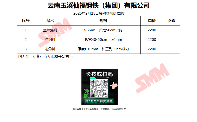 今日仙福钢铁 废钢收购报价已更新,有货的朋友欢迎联系我们!