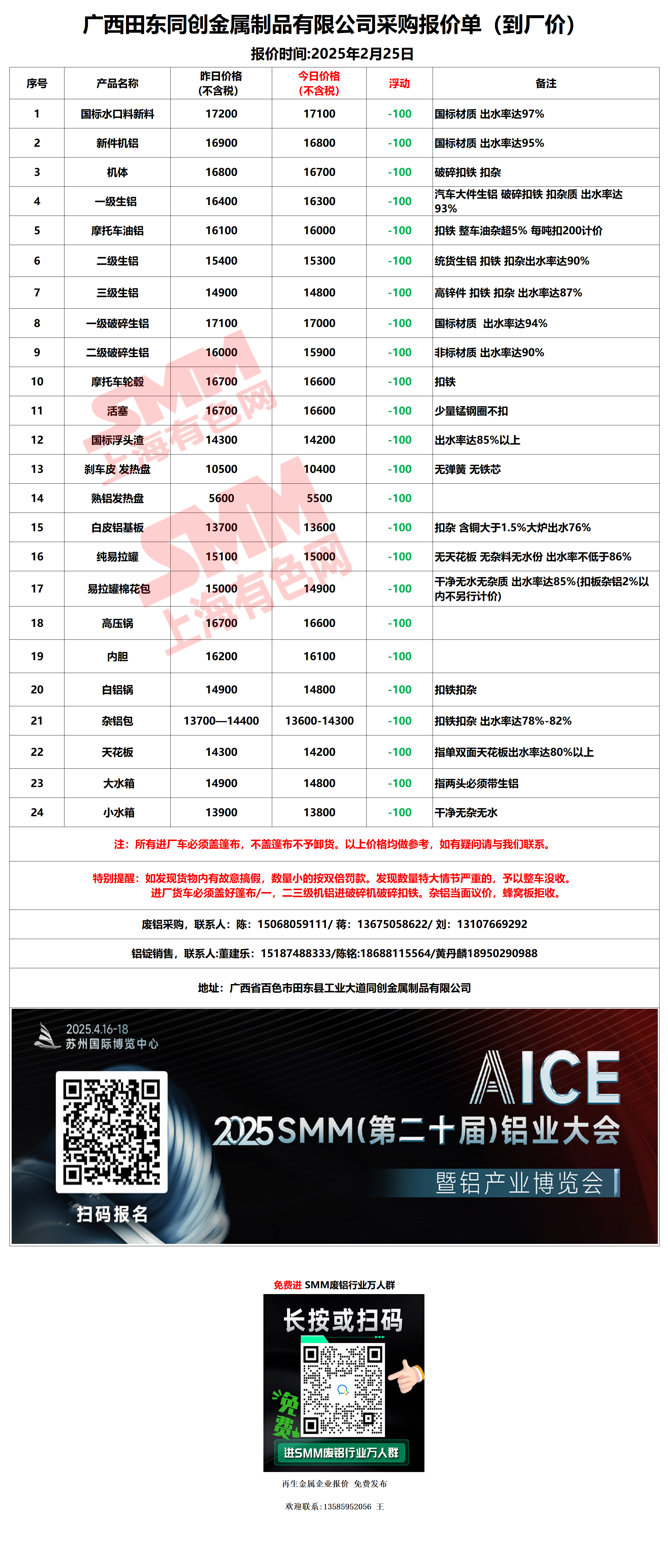 2月25日广西同创 废铝采购报价