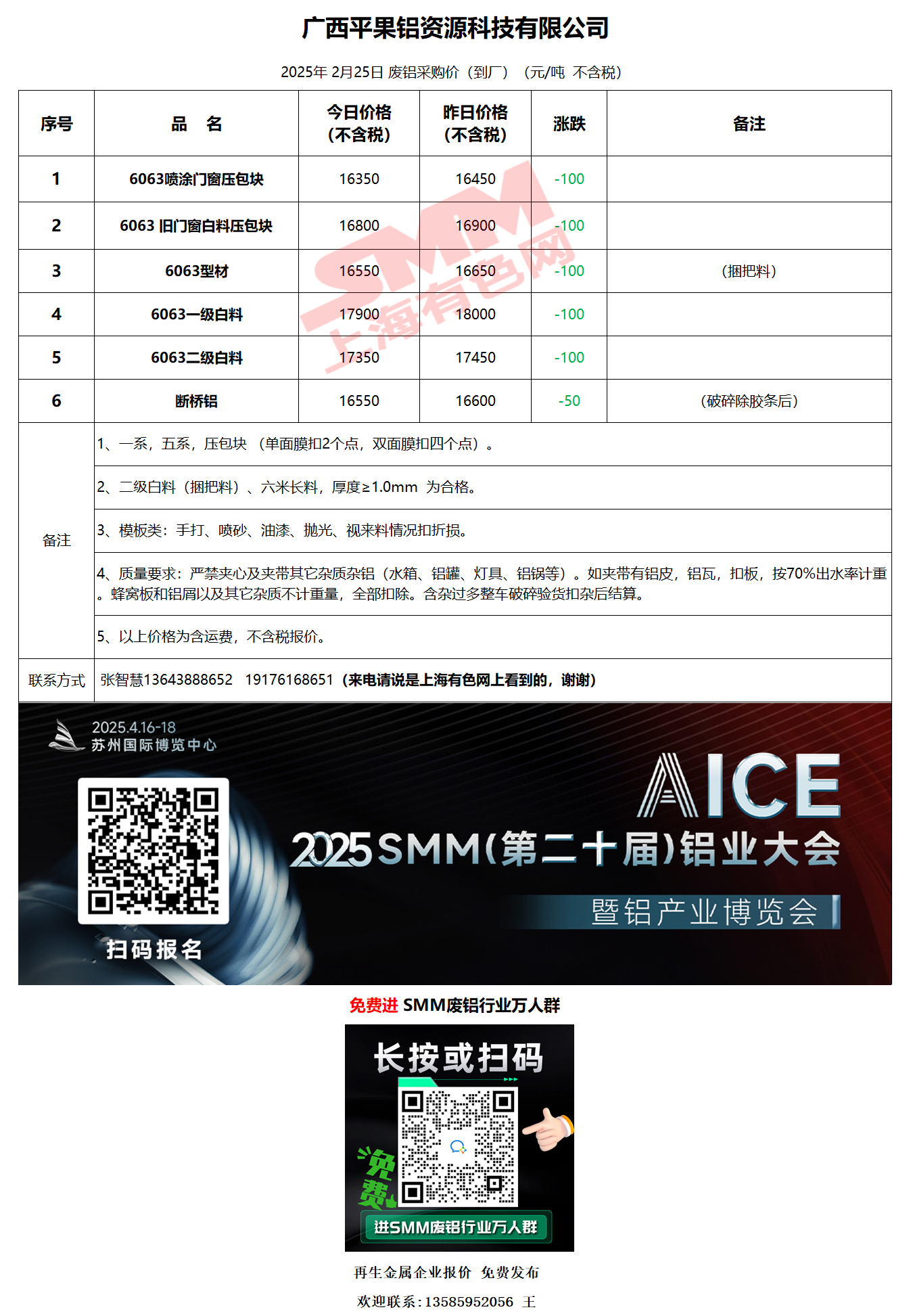 今日广西平果 废铝采购报价已更新,有货的朋友欢迎联系我们!
