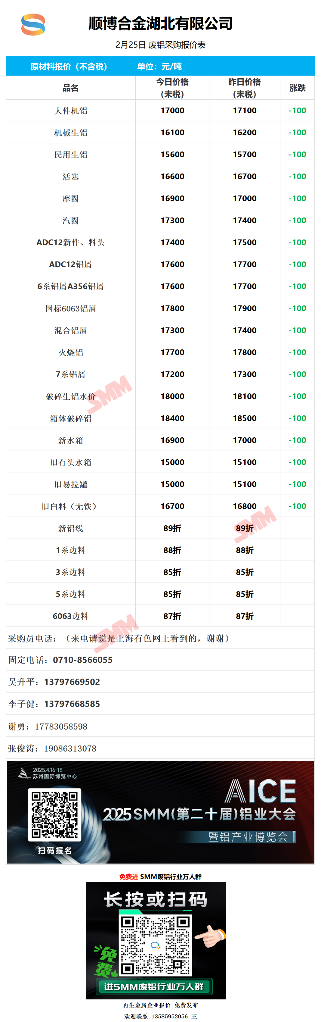 今日顺博合金湖北 废铝采购报价已更新,有货的朋友欢迎联系我们!