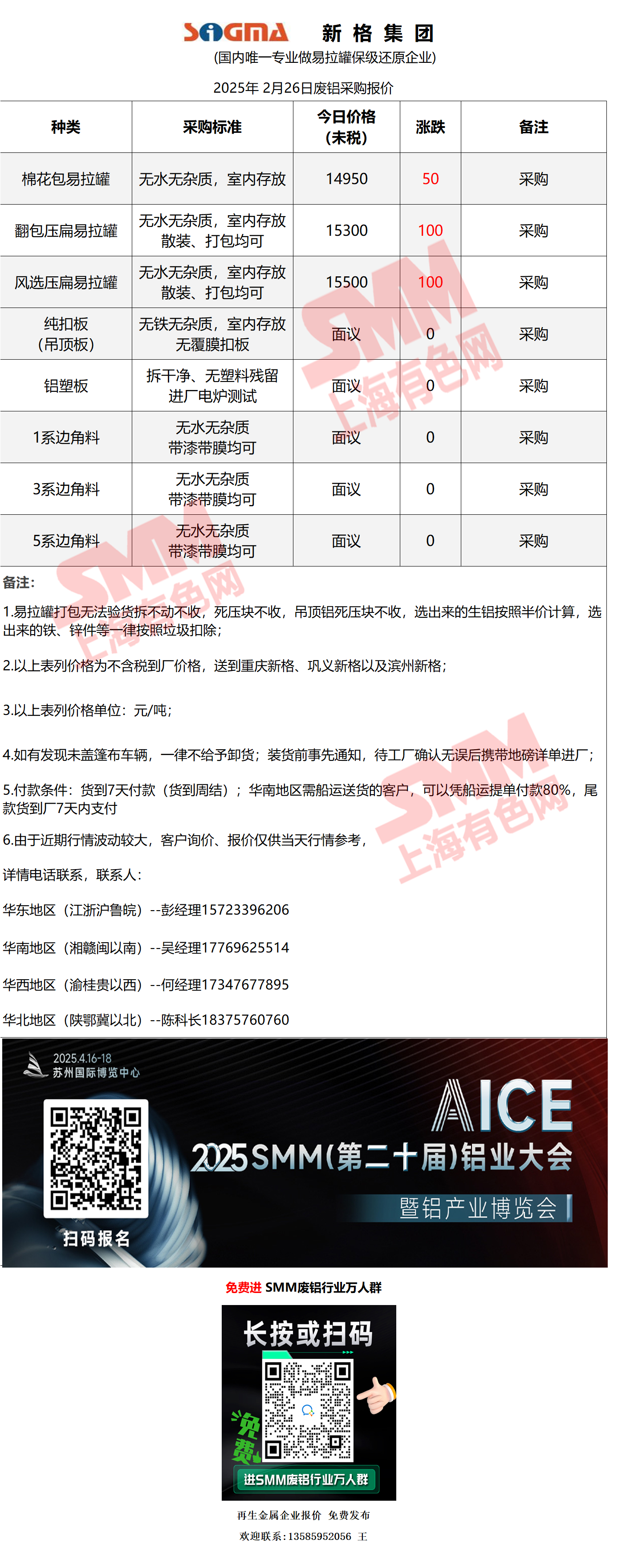 2月26日新格集团 废铝采购报价