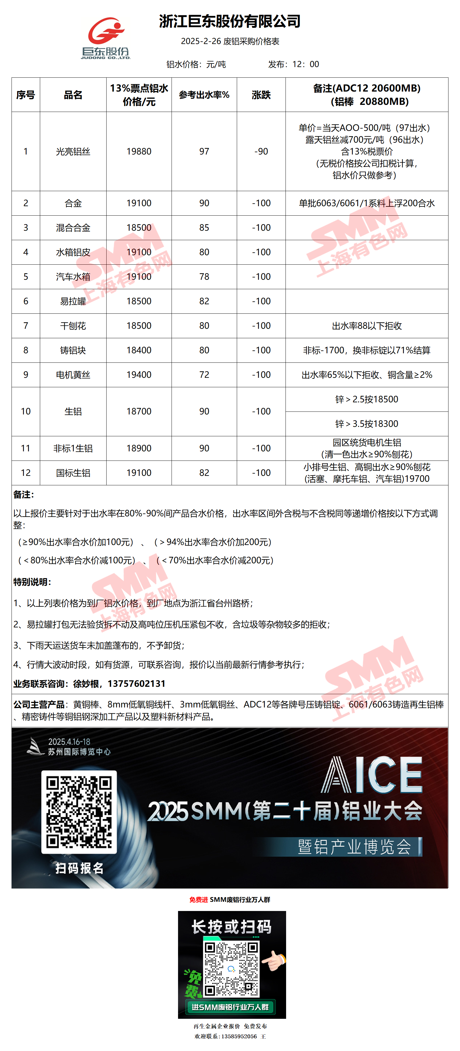 2月26日浙江巨东 废铝采购报价