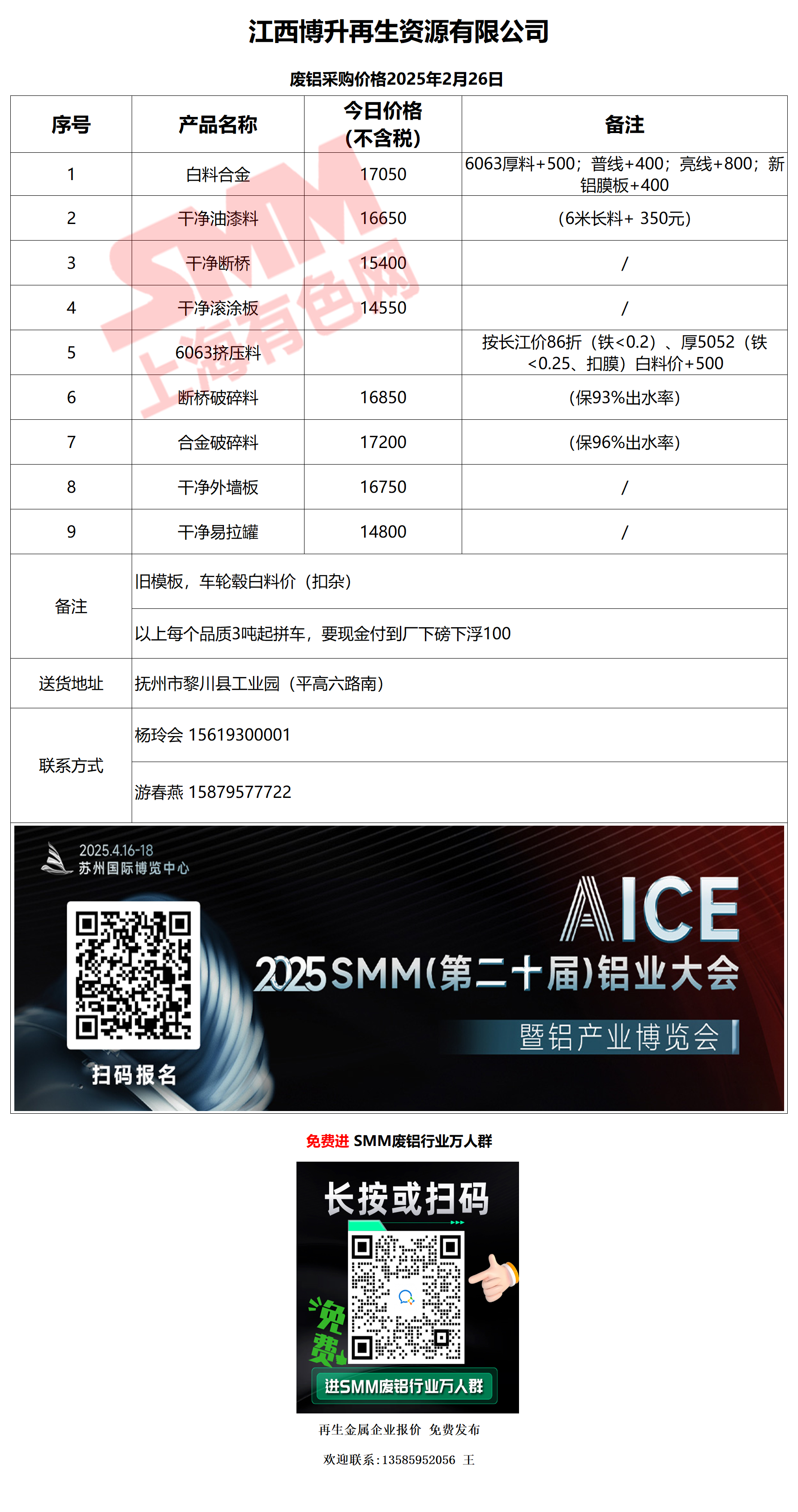 今日江西博升 废铝采购报价已更新,有货的朋友欢迎联系我们!