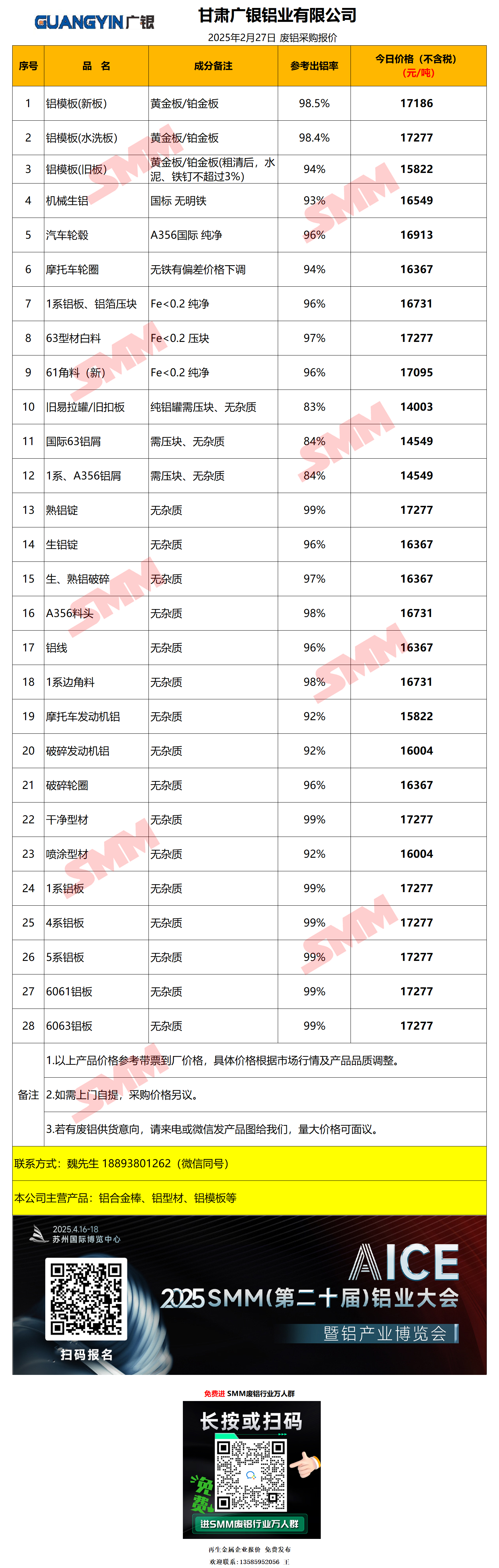 2月27日甘肃广银铝业 废铝采购报价
