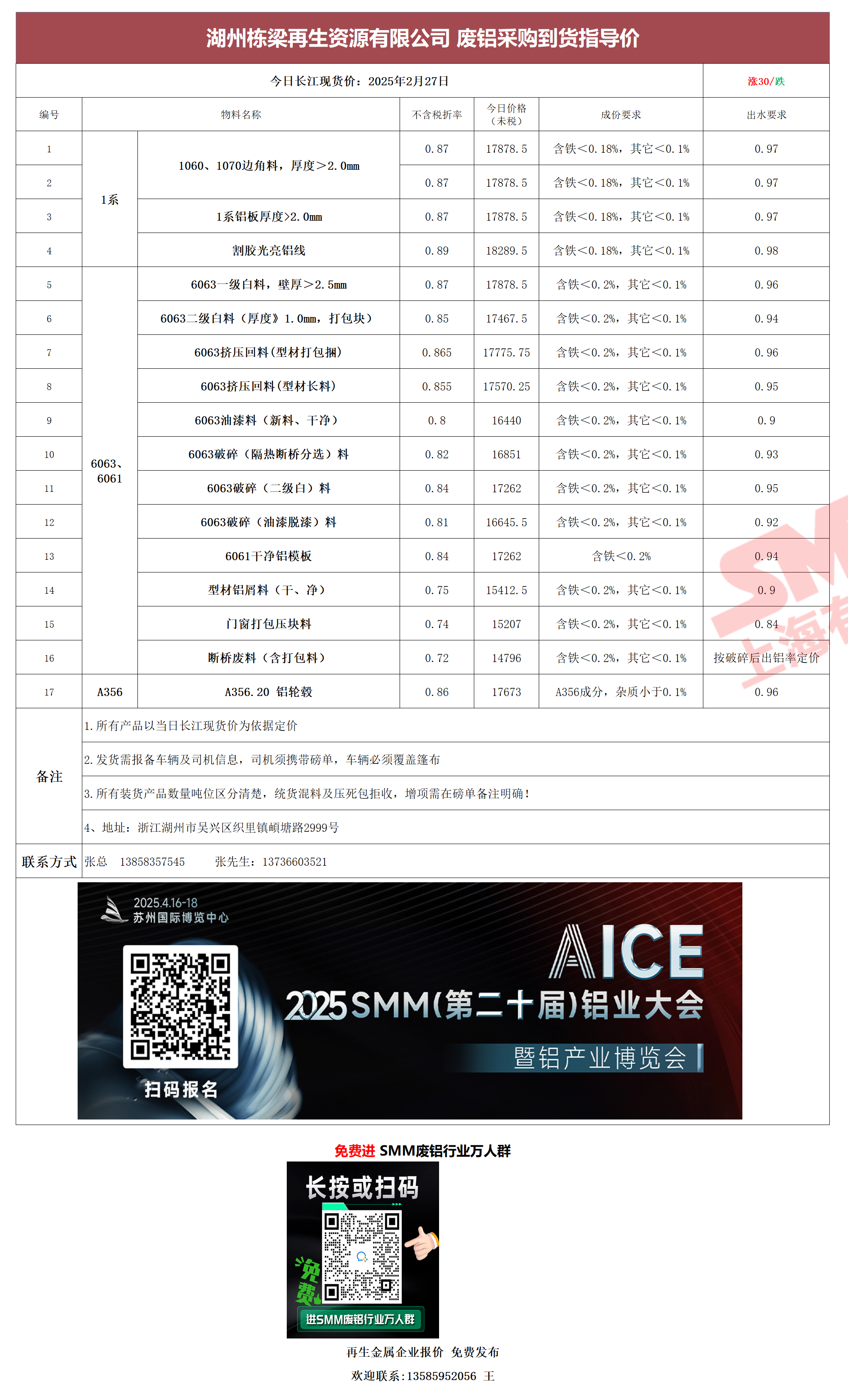 今日湖州栋梁再生 废铝采购报价已更新,有货的朋友欢迎联系我们!