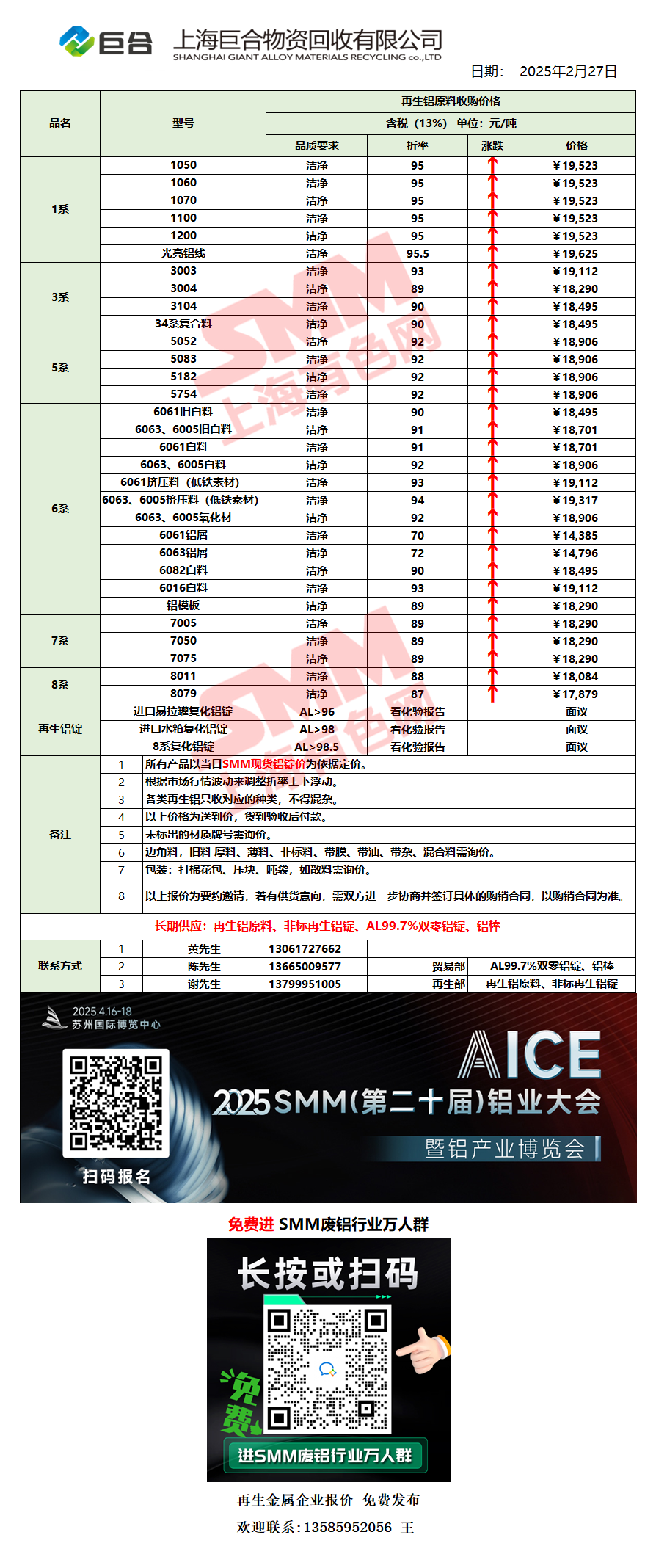 今日上海巨合 废铝采购报价已更新,有货的朋友欢迎联系我们!