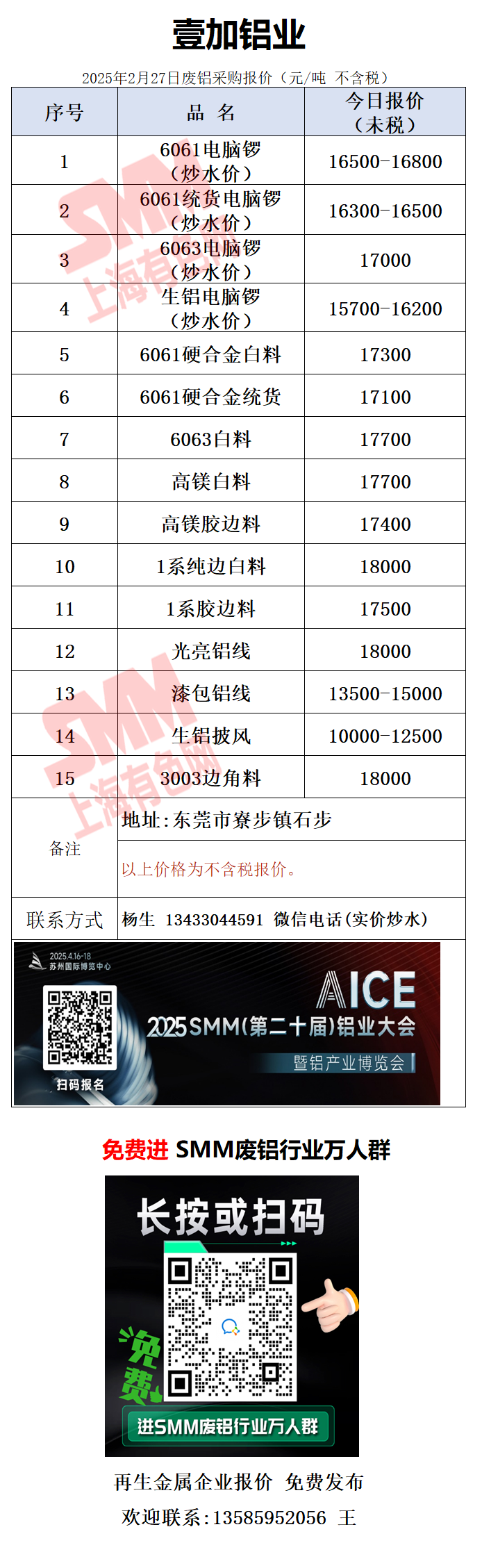 今日壹加铝业 废铝采购报价已更新,有货的朋友欢迎联系我们!